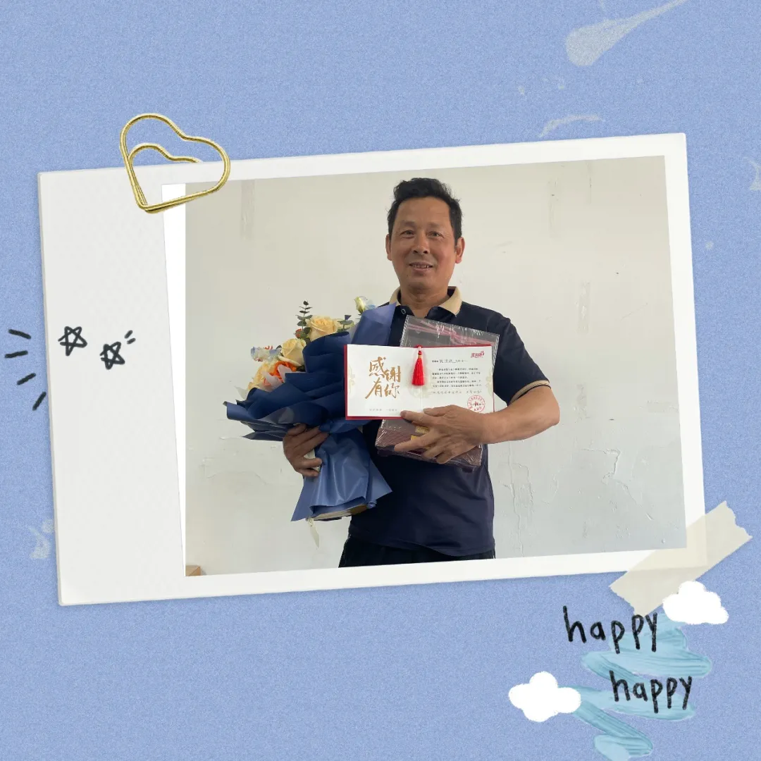 宣布时间:2024.06.19庆幸退休啦生管部-钱洪进岁月如歌情怀依旧一束鲜花一份纪念品一场荣退仪式分享点滴共话优美“岁月如歌弹指过,,,,,,时光似水不再来。。。。。”追念刚接触老钱的那年,,,,,,他获得了“十年优异员工奖”,,,,,,脸上洋溢着欢喜,,,,,,这不但是他个...