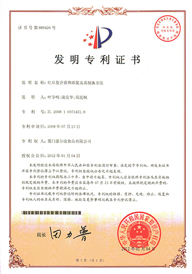 薏仁莲藕复合营养浓浆及其制备要领发明专利证书